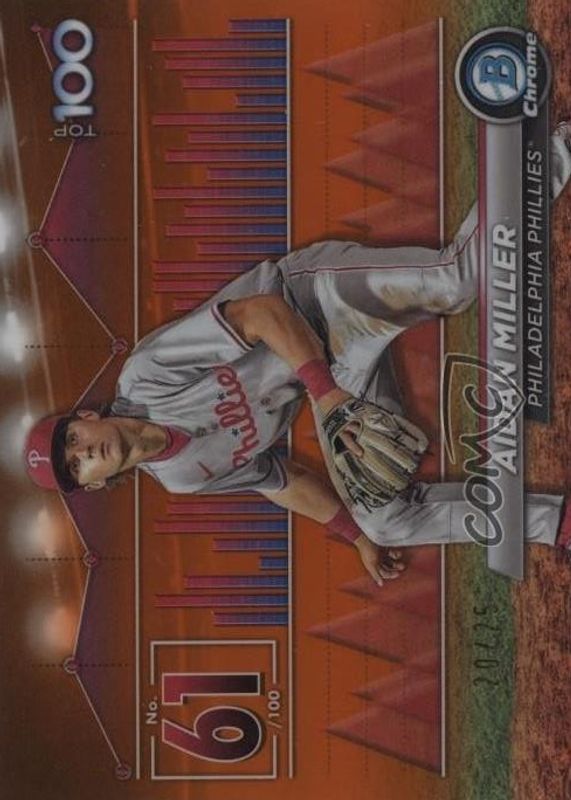 Best Prices Available For Sale of Aidan Miller 2024 Bowman #BTP-61 Bowman Scouts' Top 100 - Orange Refractor /25
