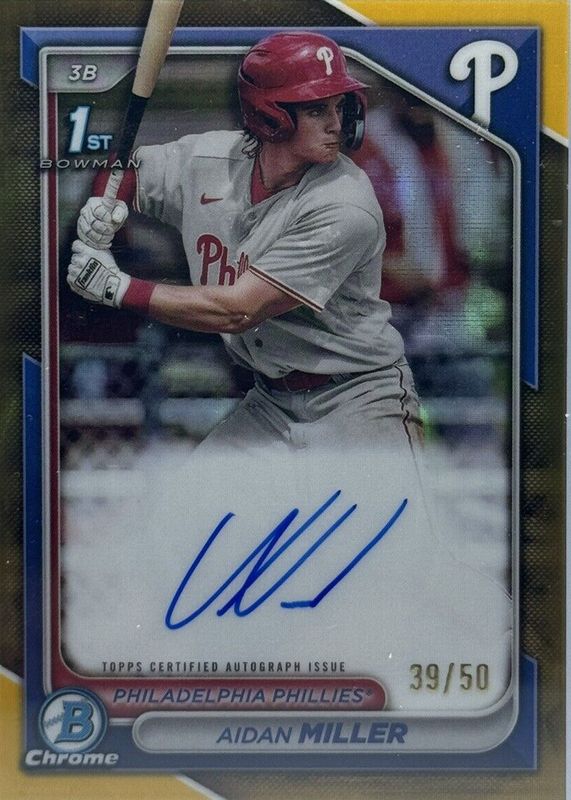 Aidan Miller 2024 Bowman Chrome Prospect Autographs Gold /50 Refractor #CPA-AMI