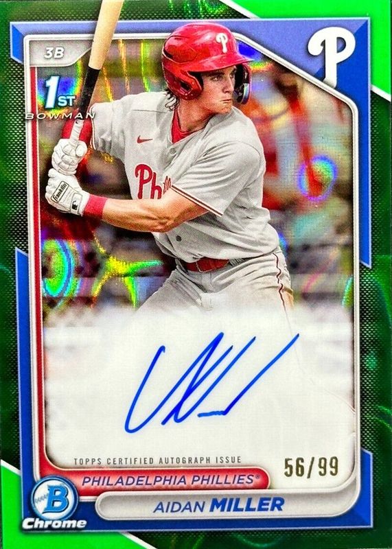 2024 Bowman Chrome Aidan Miller 1st Green Lava Refractor Prospect Auto #63/99