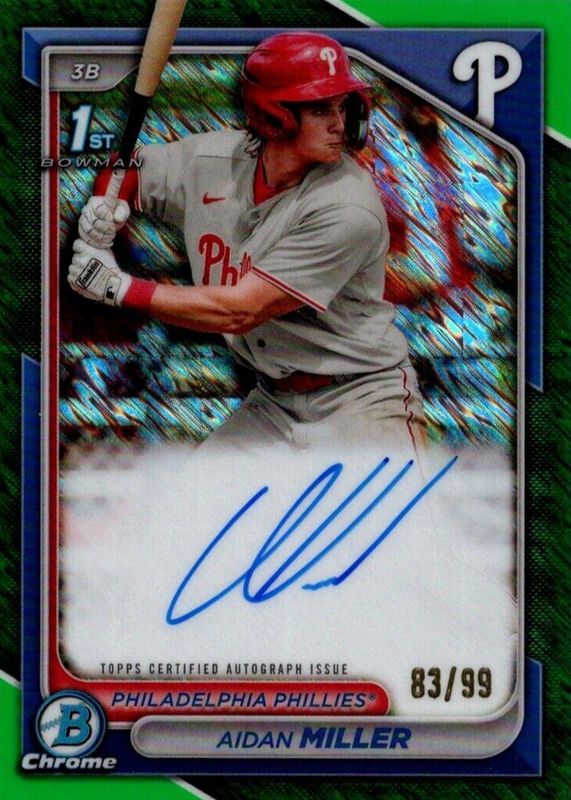Aidan Miller - 2024 Bowman Chrome 1st Green Shimmer Auto CPA-AMI Phillies 🔥 /99