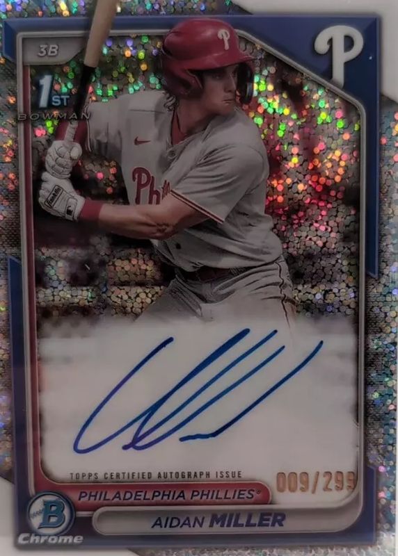 2024 Bowman Chrome Aidan Miller Speckle Auto /299 1st Bowman Phillies