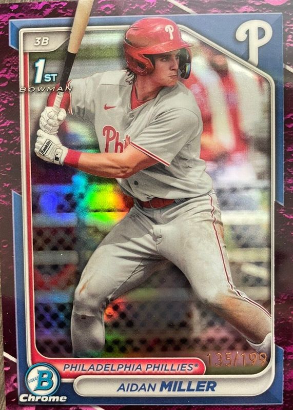 AIDAN MILLER 2024 Bowman Chrome 1st FUCHSIA LUNAR REFRACTOR #056/199 Phillies