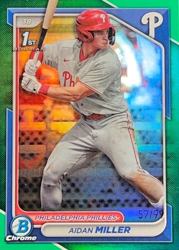2024 Bowman Chrome Aidan Miller 1st GREEN REFRACTOR TRUE #/99 Baseball Card