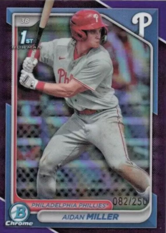 2024 Bowman Aidan Miller Chrome Purple Refractor 1st Prospect #194/250 Phillies