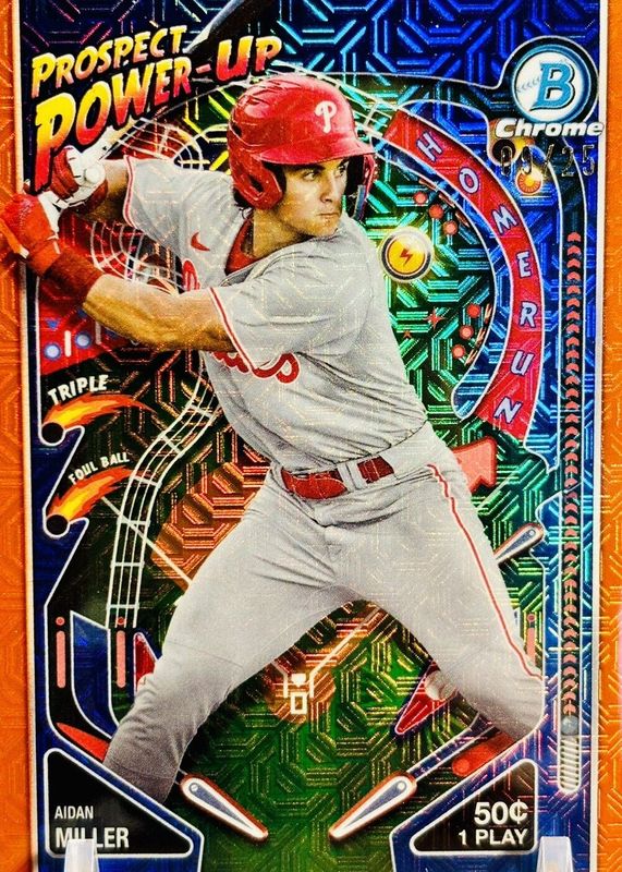 2024 Bowman Chrome Prospect Power Up Orange Aidan Miller Phillies 12/25