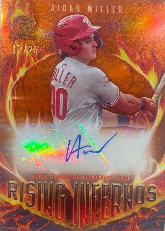 Aidan Miller 2024 Bowman #RIA-AM Rising Infernos Autographs - Orange Refractor /25 RAW Price Guide