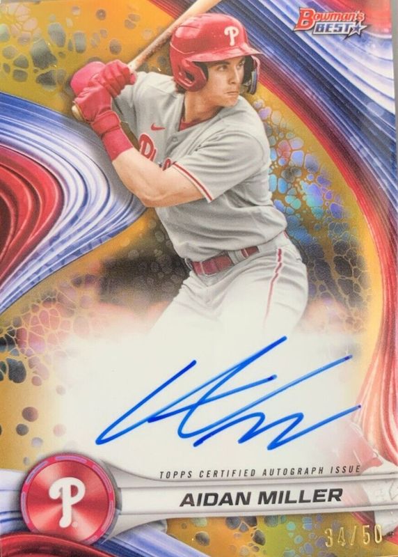 2024 Bowman's Best Aidan Miller Gold Refractor Top Prospect Auto #/50 Phillies