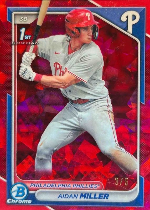 Auctions Ending Soon for Aidan Miller 2024 Bowman Sapphire Edition #BCP-27 Red /5 (1st) RAW