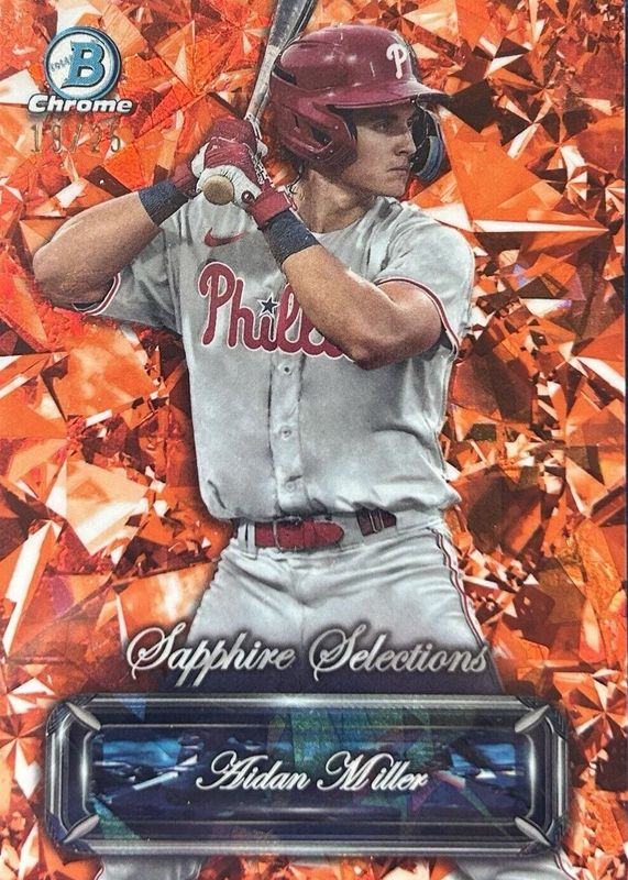 2024 Bowman Sapphire Aidan Miller Selections Orange Refractor #3/25 Phillies