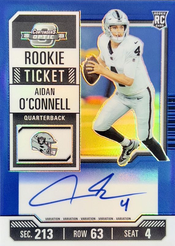Best Prices Available For Sale of Aidan O'Connell 2023 Contenders Optic #101 Rookie Ticket Auto Variation - Blue /50
