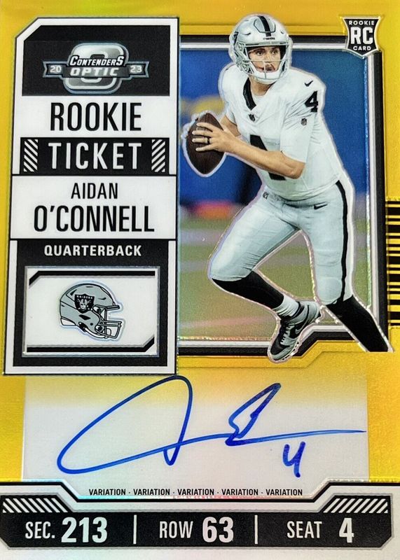 Aidan O'Connell 2023 Contenders Optic #101 Rookie Ticket Auto Variation - Gold /10 RAW Price Guide