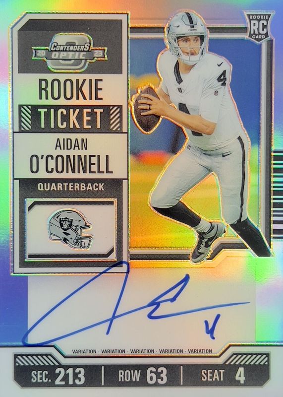 2023 Contenders Optic Aidan O'Connell Variation Rookie Ticket Silver Auto #101