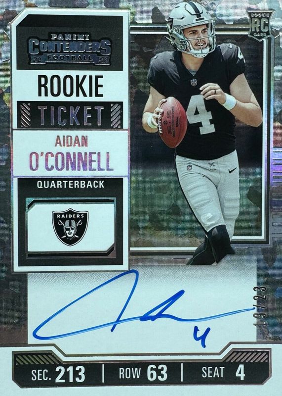 2023 Contenders AIDAN O’CONNELL Rookie Ticket Cracked Ice Auto 19/23 Raiders 101