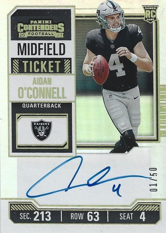 2023 Panini Contenders Midfield Ticket /50 Aidan O'Connell Rookie Auto RC NM-MT
