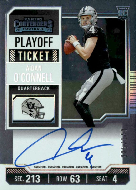 2023 Contenders Aidan O'Connell Variation Playoff Ticket RC Auto #89/149 Raiders