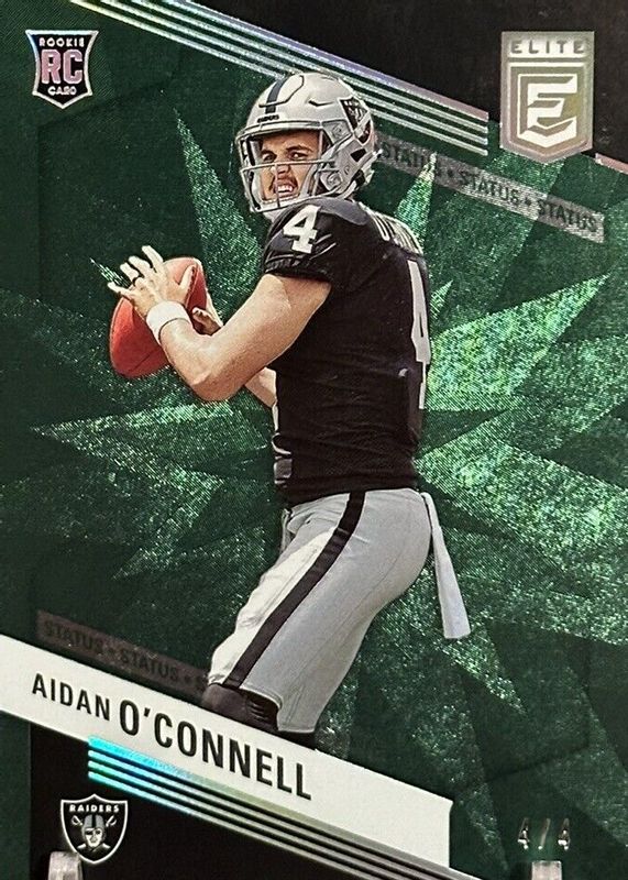 The Aidan O'Connell 2023 Elite #101 Status (/4) Rookie card in Raw condition has not changed in price in the last 30 days and was last sold for $120.00 .
