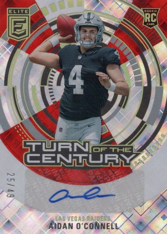 2023 Donruss Elite Aidan O'Connell Turn of the Century Red Auto 25/49 RC