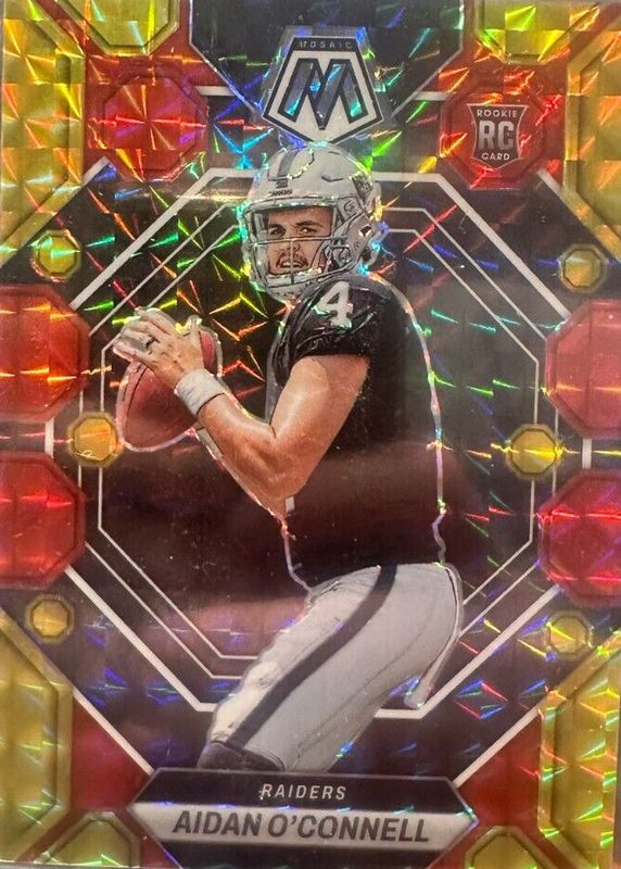 Aidan O'Connell 2023 Mosaic #281 Choice Fusion Red & Yellow /80 Rookie RAW Price Guide