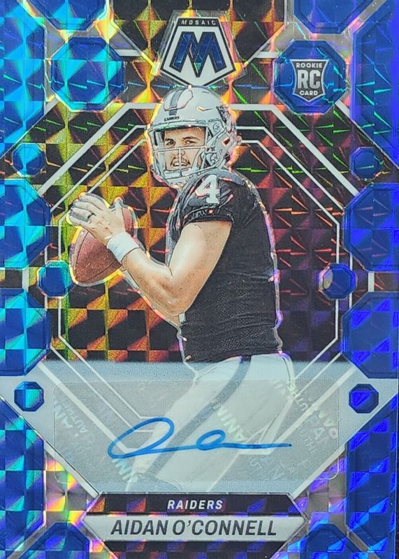 2023 Panini Mosaic Aidan O'Connell Blue Mosaic Rookie RC Auto /99 #281 Raiders