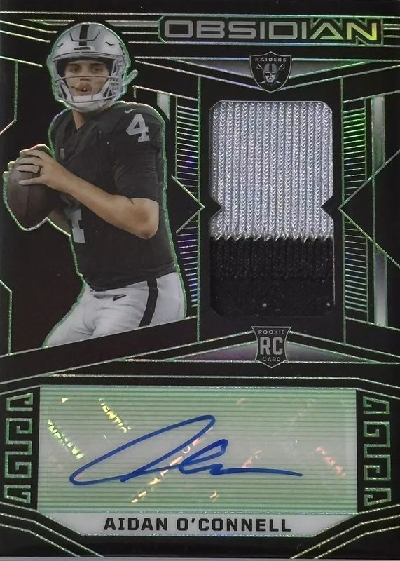 2023 Panini Obsidian Aidan O'Connell AUTO Jersey RC GREEN SP #/25 Raiders Rookie