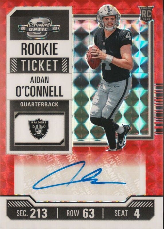 Aidan O'Connell 2023 Zenith #127 Contenders Optic Rookie Ticket Auto Preview - Red /23 (Shoe Visible) RAW Price Guide