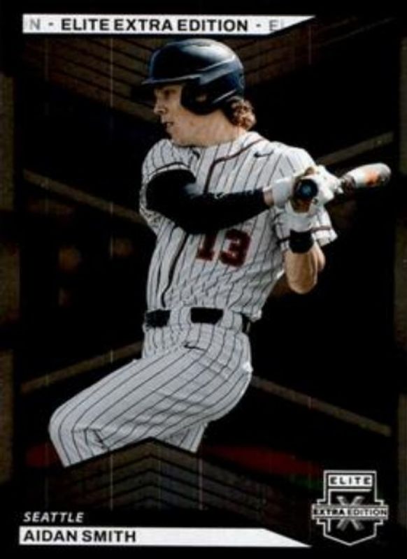 The Aidan Smith 2023 Elite Extra Edition #98 Base card is 1 of 39 Aidan Smith's card variations in the 2023 Elite Extra Edition set being tracked by Sports Card Investor, including Pink, Signatures, Status Green /499, Signatures die-cut /399, and Aspirations Blue /349.