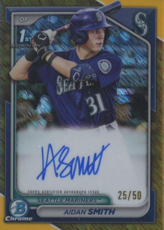 Aidan Smith 2024 Bowman Chrome 1st Auto Gold Shimmer Refractor /50 Mariners