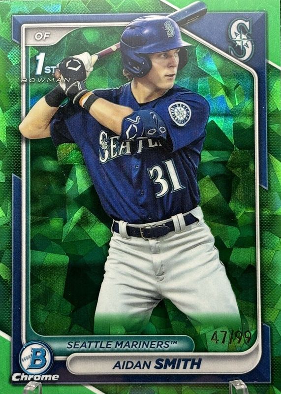 Aidan Smith 2024 1st Bowman Chrome Green Sapphire 99/99 Rays Mariners #BCP-45