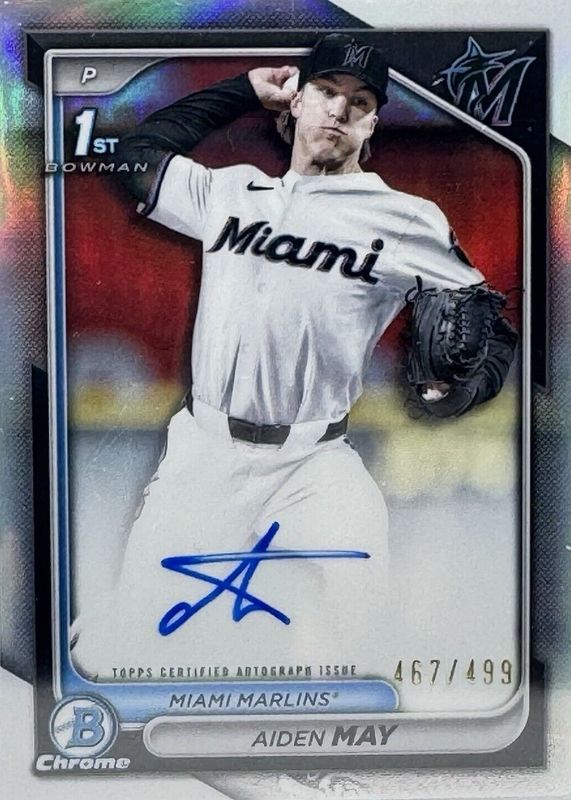 2024 Bowman Draft Aiden May Chrome Auto Refractor 1st Prospect #/499 Marlins