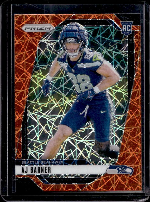 The AJ Barner 2024 Prizm #304 Lazer card is 1 of 84 AJ Barner's card variations in the 2024 Prizm set being tracked by Sports Card Investor, including Base, Choice Blue Yellow Green, Choice Silver, Disco, and Green.