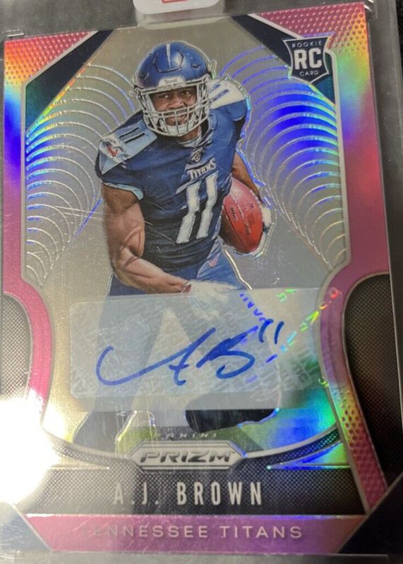 The AJ Brown 2019 Prizm #344 Rookie Autographs - Pink card in Raw condition has not changed in price in the last 30 days and was last sold for $200.00 .