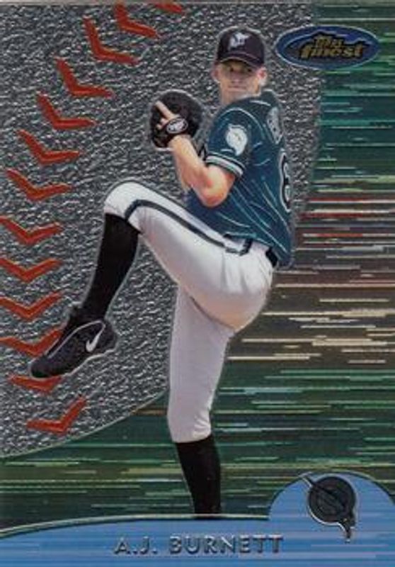 The AJ Burnett 2000 Topps Finest #87 Base card is 1 of 6 AJ Burnett's card variations in the 2000 Topps Finest set being tracked by Sports Card Investor, including #269 Base, #269 Gold Refractor /100, #87 Gold Refractor /100, #269 Refractor /1000, and #87 Refractor /1000.