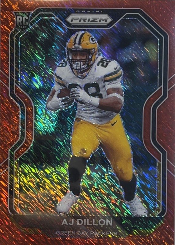 AJ Dillon's Football cards are available in at least 27 sets. AJ Dillon's biggest 7-day price movers are 2020 Origins #RA-AJ Rookie Autographs - Pink FOTL /8, 2020 Prizm #364 Rookie Autographs, and 2020 Spectra #14 Aspiring Patch Autographs - Psychedelic /5.