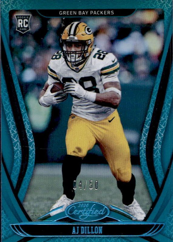 AJ Dillon 2020 Certified #124 Mirror Teal /50 Rookie RAW Price Guide