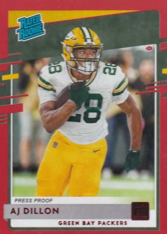 2020 Panini Donruss Rated Rookie Press Proof Red AJ Dillon #324 Rookie RC