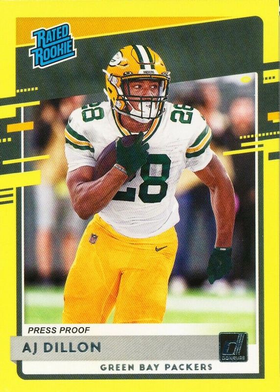 2020 Donruss Rated Rookie #324 Yellow Press Proof AJ DILLON PACK FRESH MINT