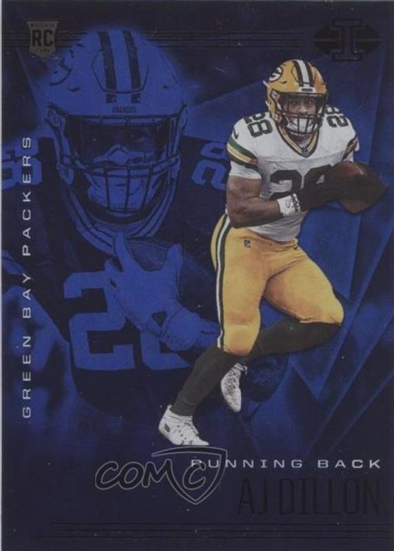 2020 Panini Illusions Trophy Collection Sapphire AJ Dillon #26 Rookie RC