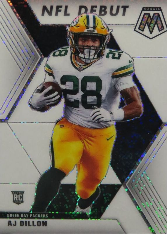 AJ Dillon 2020 Mosaic #279 NFL Debut - White Sparkle /(SSP) Rookie RAW Price Guide
