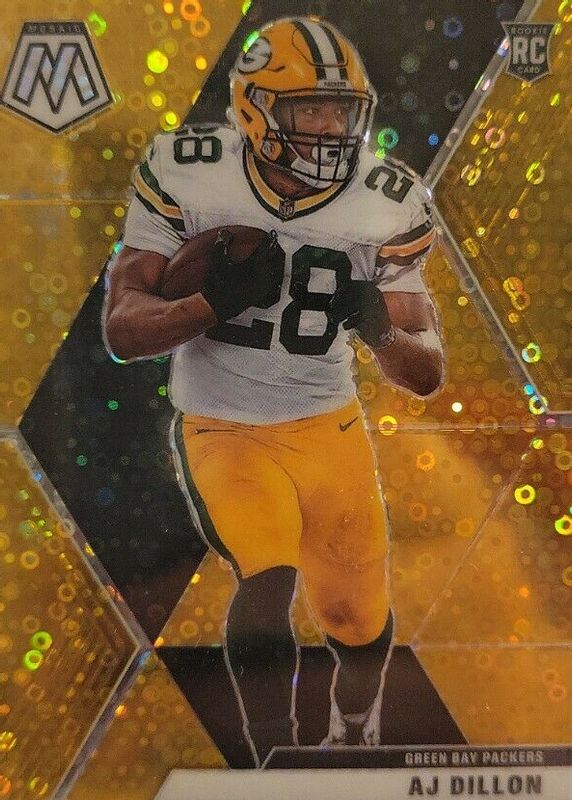 2020 mosaic football rookie AJ Dillon gold disco #/10 ssp packers