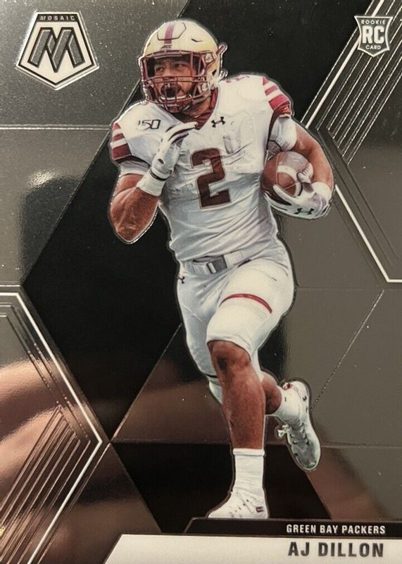 The AJ Dillon 2020 Mosaic #226 Rookie Variation card in Raw condition has not changed in price in the last 30 days and was last sold for $6.00 .