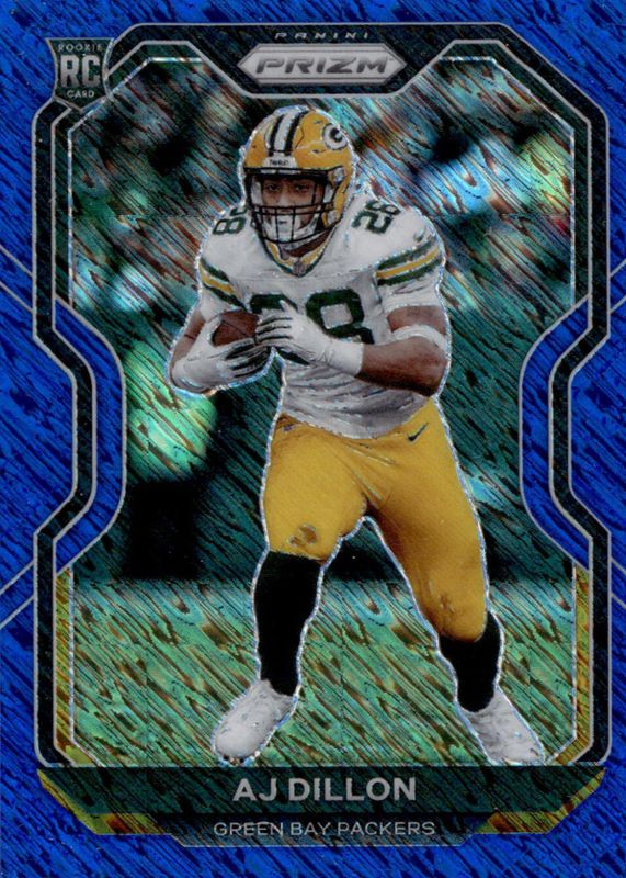 AJ Dillon 2020 Prizm #364 FOTL Blue Shimmer /25 Rookie RAW Price Guide