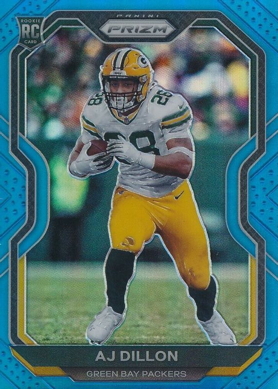 The AJ Dillon 2020 Prizm #364 Light Blue Rookie card in Raw condition has not changed in price in the last 30 days and was last sold for $1.55 .