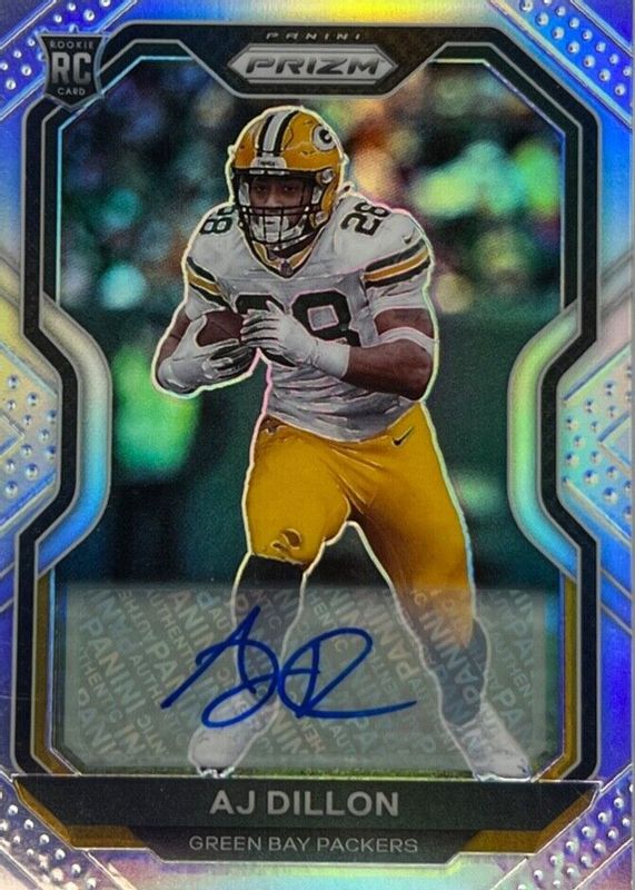 The AJ Dillon 2020 Prizm #364 Rookie Autographs card in Raw condition has not changed in price in the last 30 days and was last sold for $10.38 .