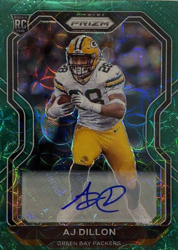 2020 Panini Prizm Green Scope Auto #364 AJ DILLON Rookie /75 - Packers