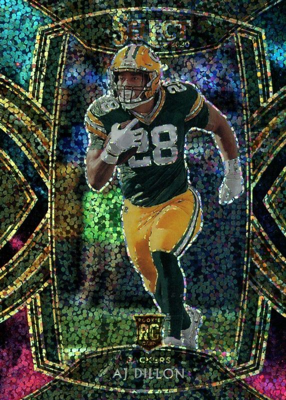 This card is 1 of 171 AJ Dillon's card variations in the 2020 Select set being tracked by Sports Card Investor, including Club Level, Concourse, Field Level, Premier Level, and Club Level Blue Die-Cut.