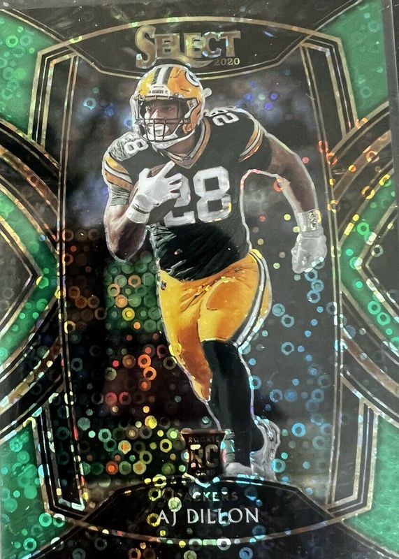 AJ Dillon 2020 Select #265 Club Level Green Disco /5 Rookie RAW Price Guide