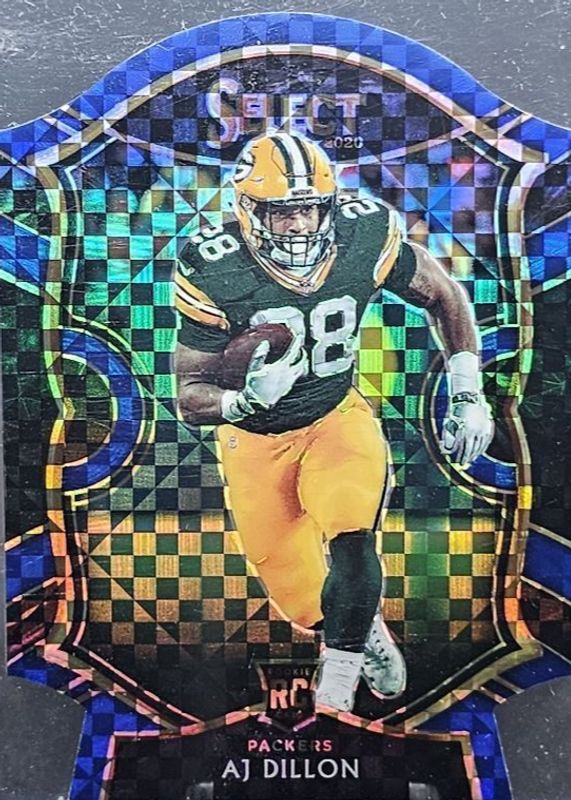 2020 Panini Select #65 AJ Dillon Blue Checker Prizm Die Cut
