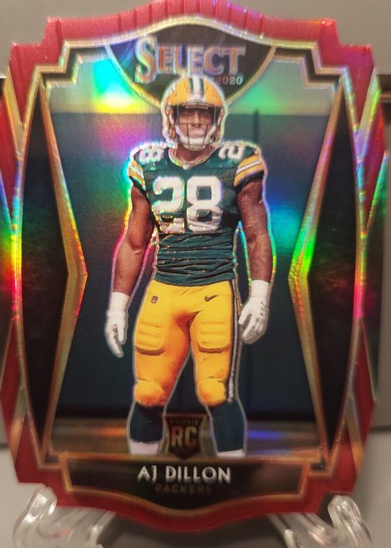 The AJ Dillon 2020 Select #165 Premier Level Maroon Die-Cut Rookie card in Raw condition has not changed in price in the last 30 days and was last sold for $0.99 .