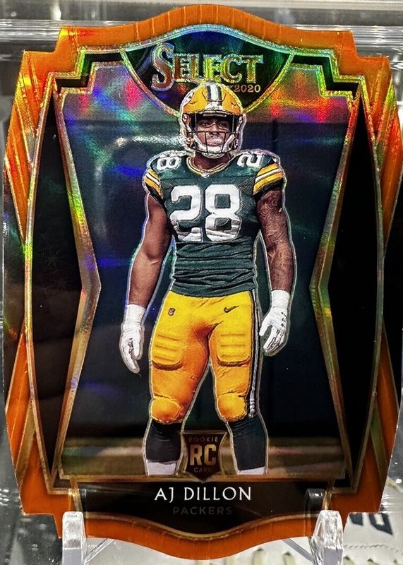 2020 Panini Select AJ Dillon RC Premier Level Die Cut Orange Prizm #165 A.J.🔥