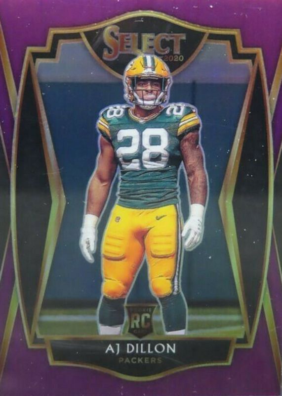2020 Select AJ Dillon Premier Level Purple Prizm Rookie RC #24/75 Packers Y689